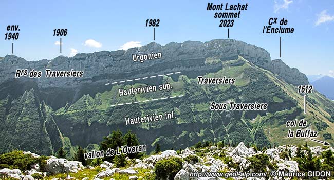 A l'ouest de cette faille la crête du Mont Lachat montre la grande simplicité de sa structure en crêt. Toutefois quelques failles de modeste rejet affectent sa dalle urgonienne : elles viennent rompre, d'une façon parfois peu facile à analyser, la continuité de la dalle structurale urgonienne du versant sud-est de la montagne.