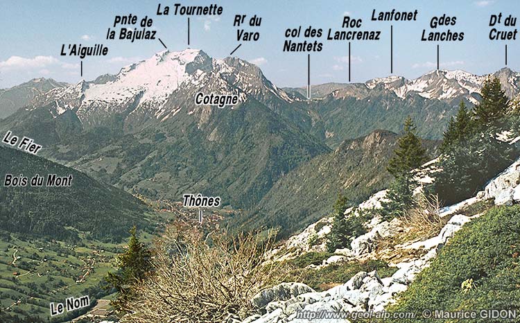 Du côté septentrional enfin le chainon de la Tournette se termine à Thônes, où il est tranché transversalement, en cluse, par la vallée du Fier.
