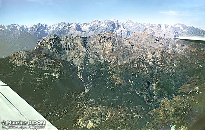 Dans le versant ouest et sur les crêtes ces nappes sont surtout représentées par la partie supérieure, calcaire et dolomitique, de leur succession de strates. Par contre dans le versant est de la montagne leur semelle siliceuse affleure assez largement et forme presque exclusivement les pentes inférieures. Enfin au pied de leur versant occidental la vallée de la Gyronde montre le soubassement de cet empilement, qui est constitué par les calcaires jurassiques et surtout les calcschistes néocrétacés de la zone subbriançonnaise.