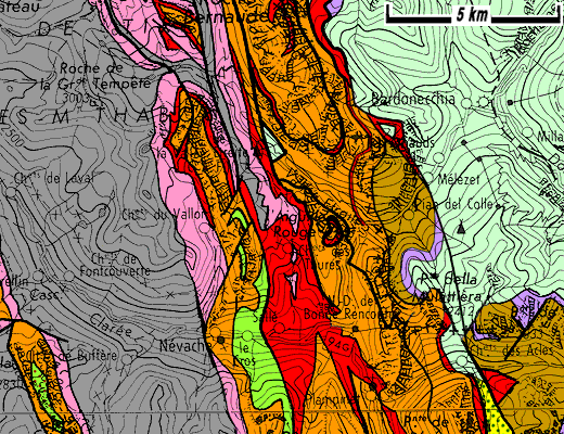 Du côté français de la Côte Névachaise (voir la page "Échelle") l'entaille du vallon du col de l'Échelle permet de comprendre la structure des calcaires et dolomies triasiques : ils doivent être rapportés à l'unité tectoniquement la plus élevé des unités des Rois Mages, c'est-à-dire à celle de Gran Scala et y sont plissés en un S majuscule par des plis à plan axial presque horizontal, comme dans les susdites unités.