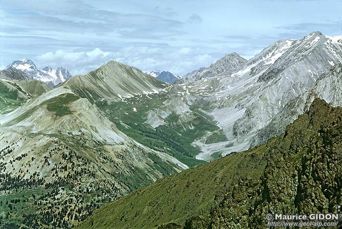Il est remarquable que cette entaille est en réalité décalée de 600 m vers le nord par rapport à la limite structurale du massif, constituée par la faille de Clavière qui le sépare de celui du Chenaillet. Il est néanmoins évident que c'est à la présence de cet accident qu'elle doit son existence, certainement initiée par la mise en contact de deux massifs rocheux de constitution très différente. Mais si sa position actuelle résulte évidemment de décalage vers le nord de son tracé, sans doute au fur et à mesure de son creusement. |