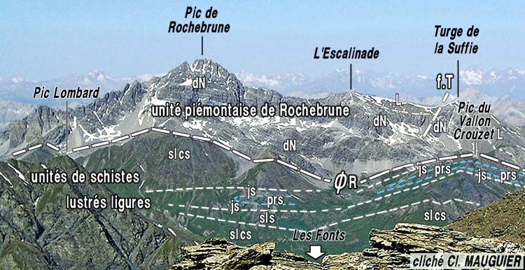 On ne peut éviter de remarquer que l'unité supérieure de cet empilement (celle, piémontaise, de Rochebrune) est considérée comme plus externe que celles qu'elle recouvre (d'origine ligure), ce qui est l'inverse de ce que l'on attend d'une imbrication normale (les unités internes venant recouvrir les plus externes).