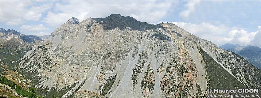 Cet édifice structural domine, du côté est, les pentes du valle della Rho, qui sont ouvertes dans les schistes lustrés ligures : cette situation elle aussi est une conséquence du fort rétrodéversement* qui se manifeste dans ce secteur des confins du Briançonnais avec le Piémontais.