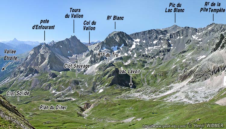 Le vallon du Lac Lavoir draine tout ce versant en direction de l'est, pour se jeter dans le torrent de la Vallée Étroite. Ce vallon semble creusé assez profondément pour avoir atteint le soubassement houiller du synclinal du Thabor au niveau de sa charnière, mais il est trop encombré par les alluvions glaciaires pour qu'on puisse le vérifier et ce sont seulement des quartzites qui affleurent sur ses deux rives, au nord comme au sud du Lac Lavoir.