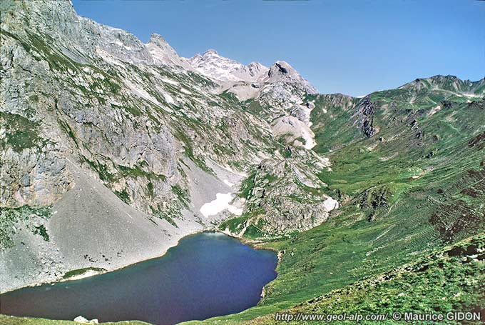 Cette situation structurale explique de façon très évidente la localisation du lac, car l'effacement, à cet endroit, de la barre calcaire du flanc oriental du synclinal de l'Aiguillette a dû inciter les glaces descendant du revers est du Galibier s'engager directement par la brèche ainsi ouverte dans cette barrière : leur passage s'y est accompagné très logiquement d'un surcreusement* dans les terrains tendres du cœur de synclinal, immédiatement en amont du verrou constitué par le flanc ouest du pli.