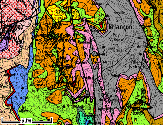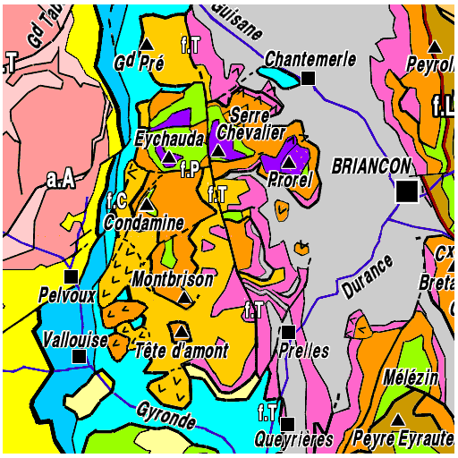 Grésourières. extrait de la carte d'ensemble du Briançonnais