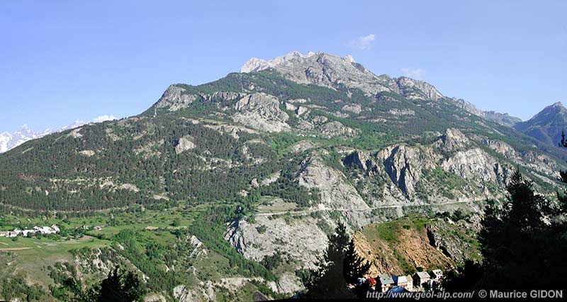 Le "Château" de Queyrières, situé immédiatement au sud de ce point, est quant à lui formé par une simple lame de calcaires triasiques (flanquée d'un peu de quartzites werféniens), qui est pincée verticalement le long du contact Briançonnais - Subbriançonnais (c'est-à-dire le long de la faille de Trancoulette). L'érosion l'a dégagée en relief parce qu'elle est prise entre deux zones de terrains tendres (marbres en plaquettes à l'ouest et schistes houiller à l'est).