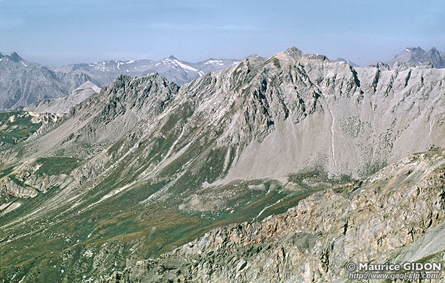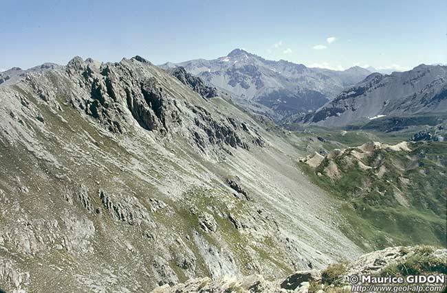 à la nappe de Peyre Haute ; celle-ci est ployée en un synclinal dont la crête de Maravoise représente le flanc inverse, tandis que son flanc normal est représenté du Haut Mouriare à l'Orcière et au Pic de Peyre Eyraute.