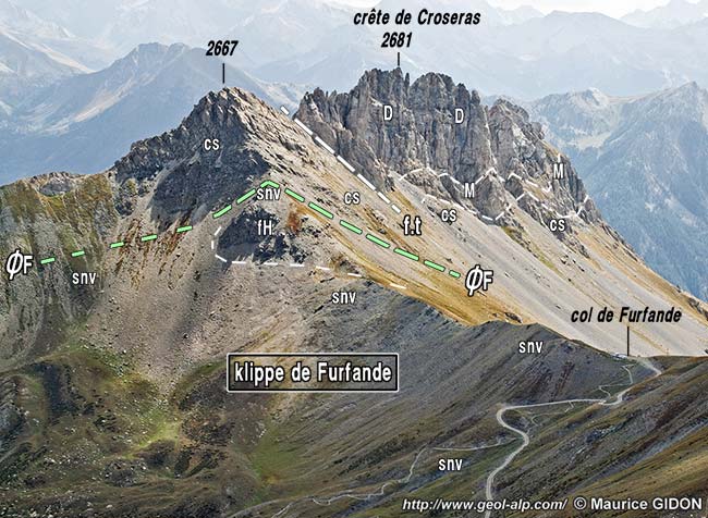 Ces rapports entre le matériel de la nappe de la Clapière (Crête de Croseras) et le flysch de la klippe de Furfande indiquent clairement que la mise en place de cette dernière a été antérieure aux dernières compressions qui ont affecté le matériel briançonnais.