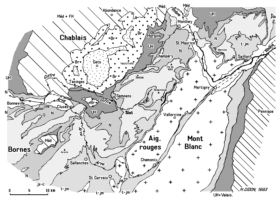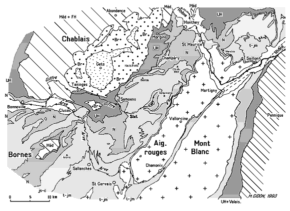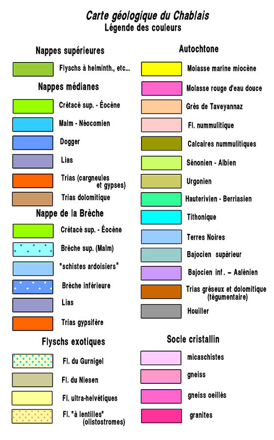 redessinée sur la base de la carte géologique d'ensemble des Alpes occidentales, du Léman à Digne, au 1/250.000°", par M.Gidon (1977), publication n° 074 Cette carte est imprimable à l'échelle du 1/250.000° : pour cela porter sa résolution de 72 dpi à 100 dpi (= réduction à 72 %) ; l'impression directe, à 72 dpi, aboutirait à l'échelle du 1/176.651°... Pour imprimer au 1/100.000° porter la résolution à 40 dpi ou agrandir à 180 % Une version de taille supérieure (1/250.000°) est disponible sur CD (sur demande spéciale adressée à l'auteur.) |