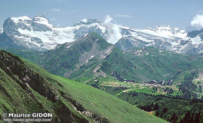 En rive droite de la Dranse sont entaillés deux vallons qui se sont encaissés dans la dalle résistante de la nappe de la Brèche supérieure. Du fait de l'inclinaison de l'axe synclinal, qui se relève vers le NE plus vite que le fond des vallons, c'est vers l'amont de ces derniers qu'ils ont réussi à percer cette dalle jusqu'aux schistes ardoisiers ; tout à fait en amont ils ont même mis à nu la Brèche inférieure, mais ceci a été facilité par deux failles parallèles, presque N-S, les failles d'Avoriaz qui coupent en biais l'échine portant la station (voir plus loin).