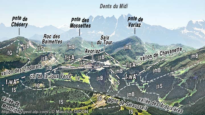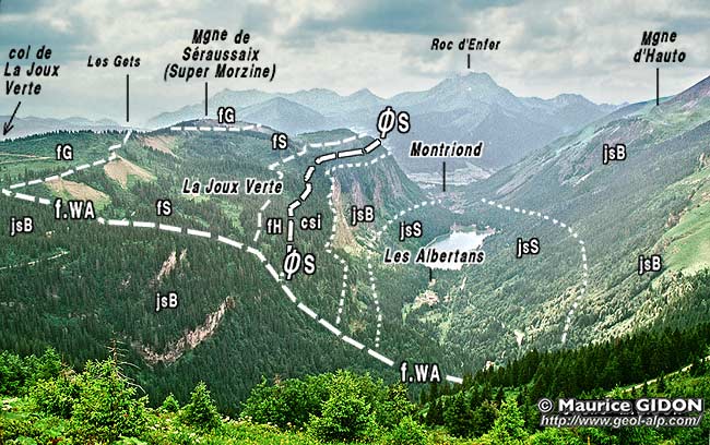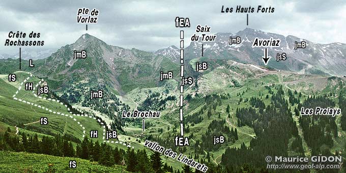 Du côté ouest de l'agglomération d'Avoriaz la faille occidentale abaisse suffisamment son compartiment ouest pour que la longue échine E-W de Séraussaix soit largement garnie par l'empilement des 3 éléments de la nappe de la Simme.