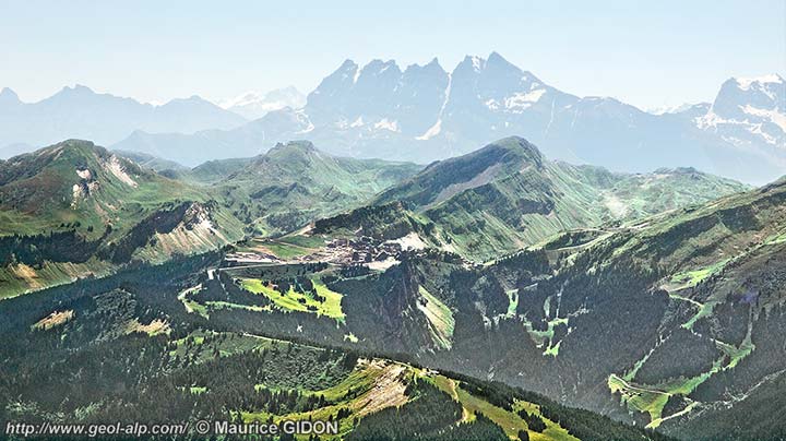 A la faveur de ces failles le crêt de la "brèche inférieure" (qui forme la partie amont de la crête) et mis bout-à-bout avec celui de la "brèche supérieure" (partie aval de la crête, ou "montagne d'Avoriaz"). La station surplombe ainsi le vallon des Ardoisières par des abrupts taillés dans deux niveaux différents de brèche du Chablais, selon qu'il s'agit de sa partie ouest ou est de l'agglomération.