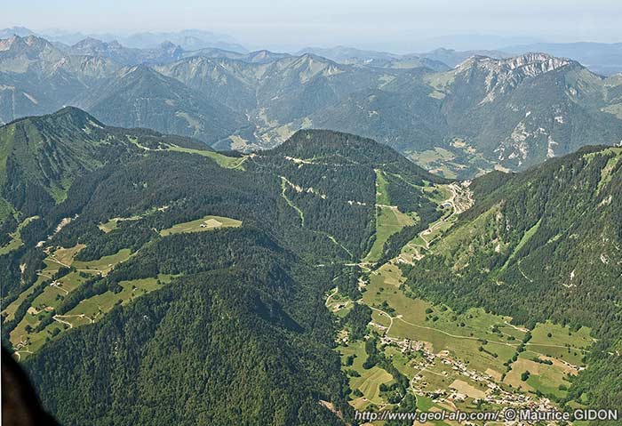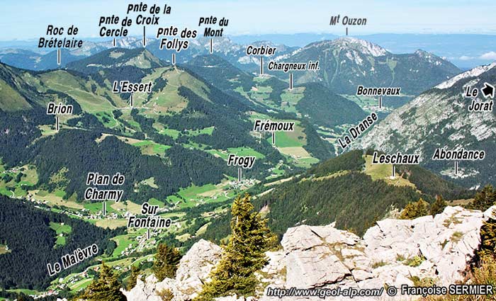Les villages du Corbier et de Bonnevaux sont situés de part et d'autre du seul col routier qui franchit ce chaînon. C'est à l'emplacement de ce col qu'est implantée la petite station du Corbier, dont les constructions sont bâties sur les schistes argileux noirs ("flysch noir") du sommet de la succession des Préalpes médianes (ces couches "tendres" déterminent à l'évidence l'emplacement du col). ...