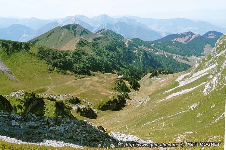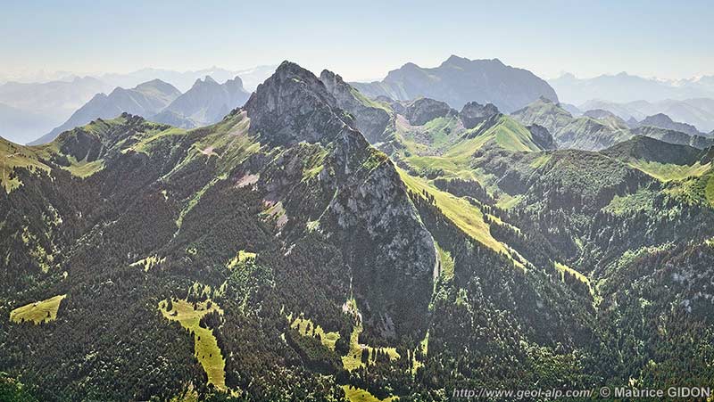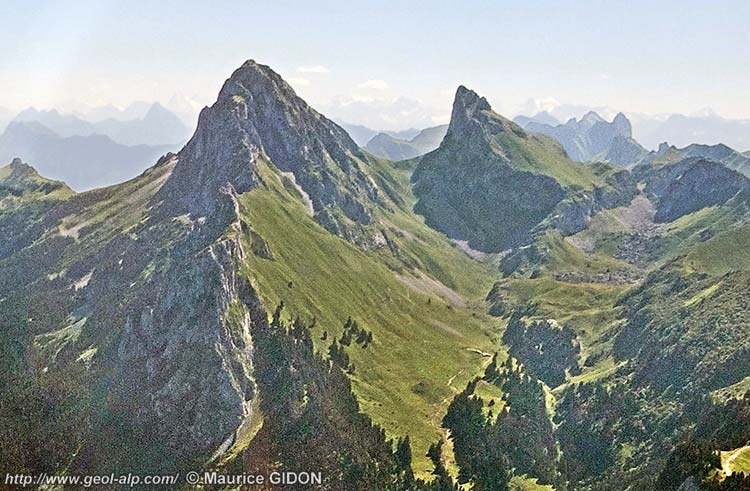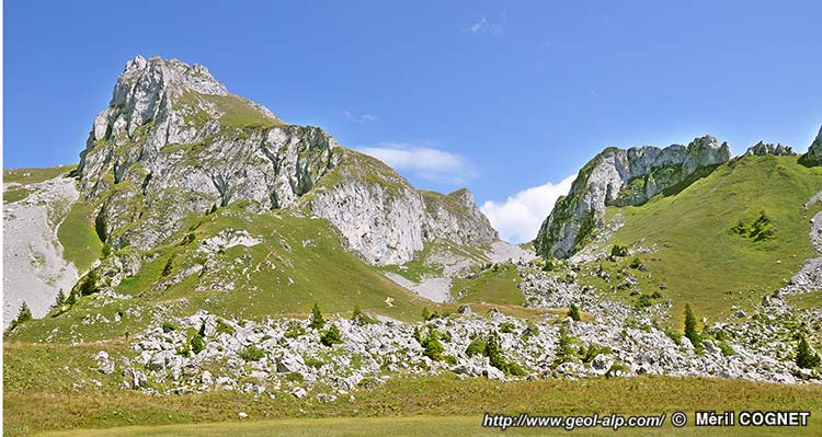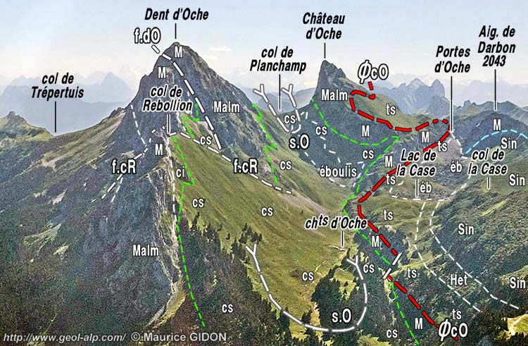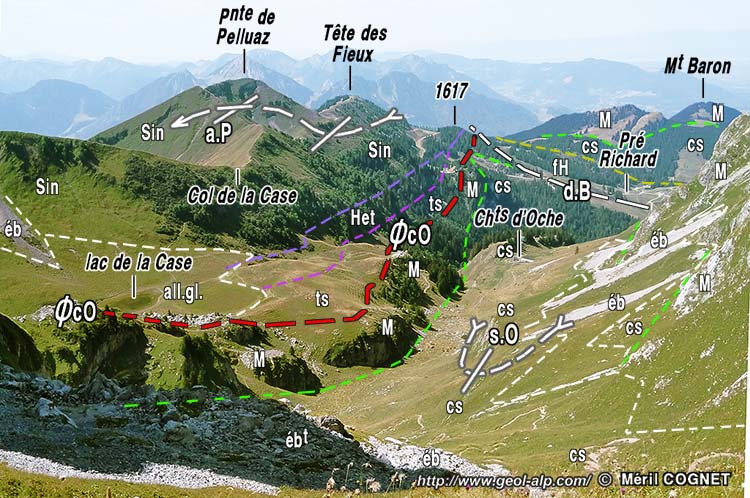 Mais la coupe naturelle que donne la terminaison occidentale de la crête rocheuse, entre les vallons convergents du col de Planchamp et des Portes d'Oche, montre que ce dispositif est affecté de complexités supplémentaires.