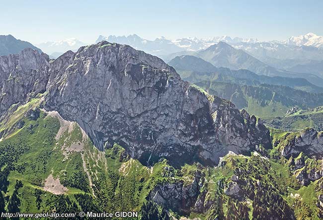 L'arête sommitale de la montagne est formée par les calcaires massifs du Malm, dont les couches pendent aux environs de 60° vers le sud : tandis qu'elles forment des dalles qui plongent de ce côté, vers le vallon d'Oche elles sont tranchées presque orthogonalement par les abrupts du versant nord : ce serait un "crêt" typique si les couches n'y étaient pas aussi redressées.