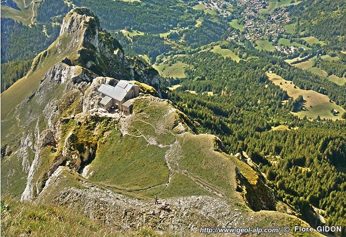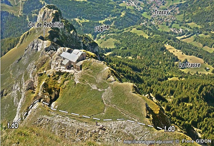 Ces calcaires, déjà stratigraphiquement épais, y sont en outre presque redoublés par une petite faille de chevauchement secondaire qui franchit la crête 100 m à l'est du refuge (lequel est construit sur une épaule de l'arête ouest) : c'est cette cassure qui détermine le dernier ressaut qu'il faut franchir pour finir d'atteindre le sommet.