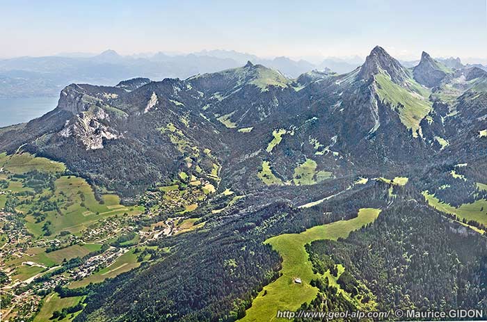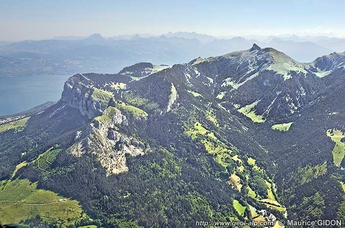 ![]() Détail de la montagne des Mémises, vue de l'ouest, d'avion depuis l'aplomb de Vinzier. |
