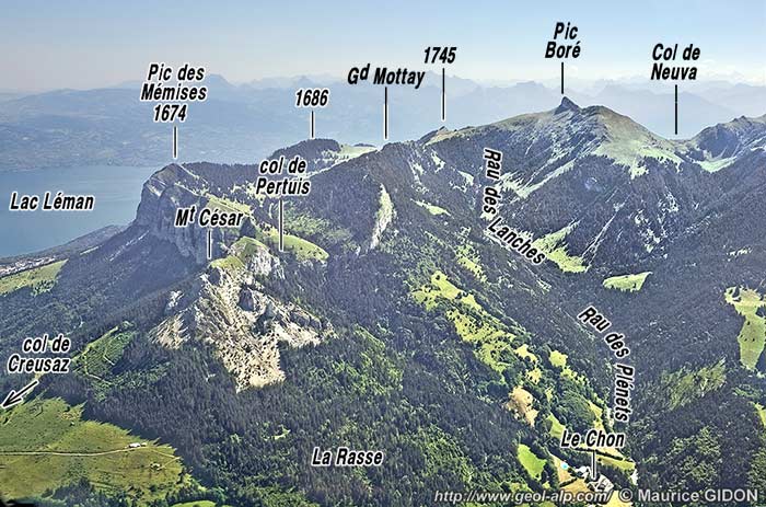 Le petit chaînon E-W de la montagne des Mémises est le premier que l'on rencontre en s'élevant vers l'intérieur du massif du Chablais depuis la rive sud du Lac Léman. Il constitue lui-même le plus septentrional au sein d'un faisceau de plis qui sont tranchés en coupe naturelle par les pentes de rive droite de la vallée de l'Ugine en amont du village de Trossy.