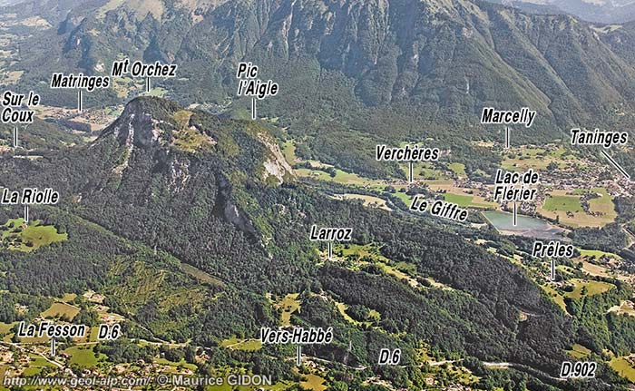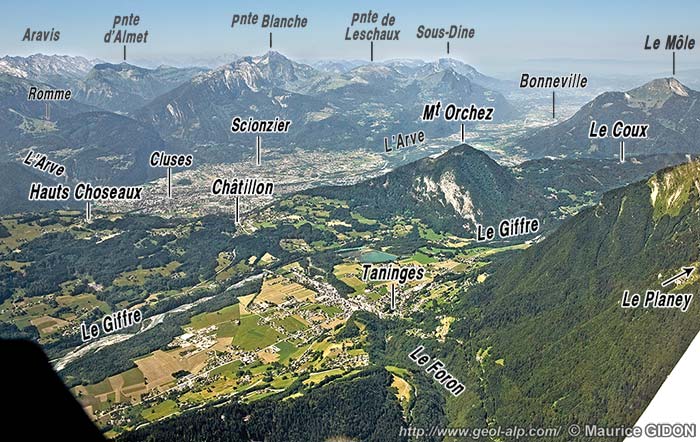 Au sud de Taninges la plaine alluviale du Giffre est séparée de celle de l'Arve par le petit chaînon, presque E-W, du Mont Orchez que la route D.902 menant de Taninges à Cluses, franchit aisément au col de Châtillon-sur-Cluses.