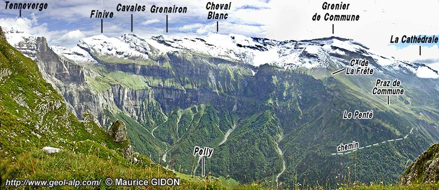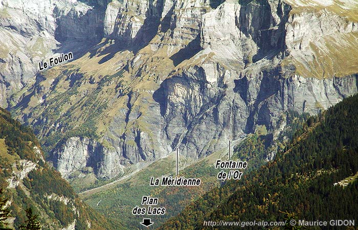 Au total si l'on prend également en compte ce que montre le versant plus oriental, suisse, de cette montagne (voir les pages "Emosson" et "Barberine") il s'avère que les renversements de couches n'y sont que très occasionnels (dus à des replis de détail liés aux glissements couches sur couches) et que la succession globale n'est en aucune façon ployée en un grand pli couché comme le voudrait l'interprétation du prolongement ici de la nappe de Morcles.