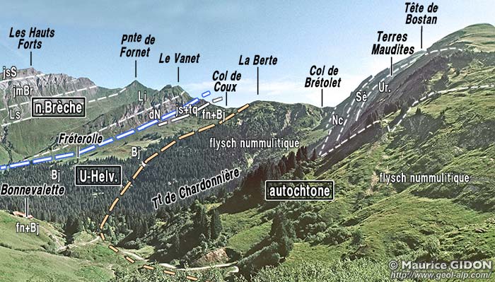 Ce pli est apparemment le plus septentrional du massif du Haut-Giffre, car les molles pentes plus septentrionales des abords du col de Coux ne montrent plus que le flysch nummulitique de son flanc nord, qui s'enfonce sous les nappes des Préalpes.