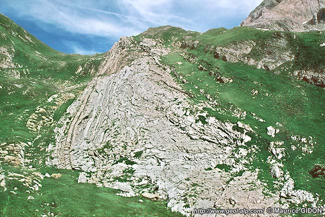La voûte de son armature de calcaires crétacés s'enfonce sous le Nummulitique avant même l’extrémité de son échine au col de la Golèse.