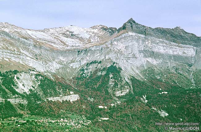 Les pentes de rive droite de l'Arve qui, en aval de son débouché des gorges de Servoz, descendent jusqu'à Chedde sont couronnés par une puissante falaise calcaire. Formée par l'ensemble Urgonien + Sénonien + calcaires nummulitiques, elle constitue le rebord méridional des escarpements rocheux les plus élevés de la cluse de l'Arve, qui s'abaissent progressivement vers le sud-est depuis le sommet de la Tête du Colonney.
