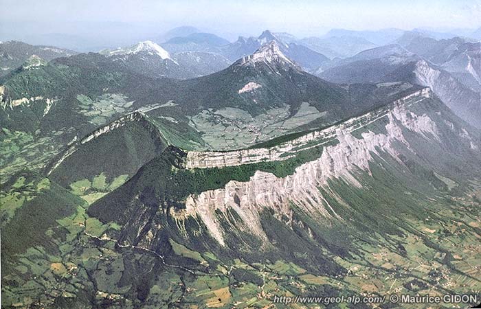 Les deux photos ci-après montrent la succession des formations les plus largement représentées de la série stratigraphique de la Chartreuse et la manière dont elles influent sur le relief.