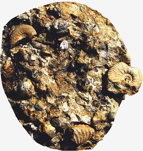 Certains de ces nodules sont des fragments de coquilles (ammonites,