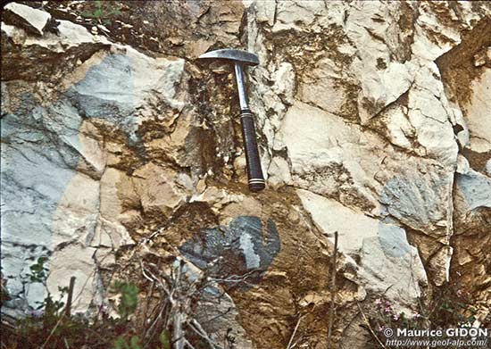 - Vers le haut le passage aux Marnes à miches de l'Hauterivien est franc, voire brutal, du fait d'un changement radical de faciès.