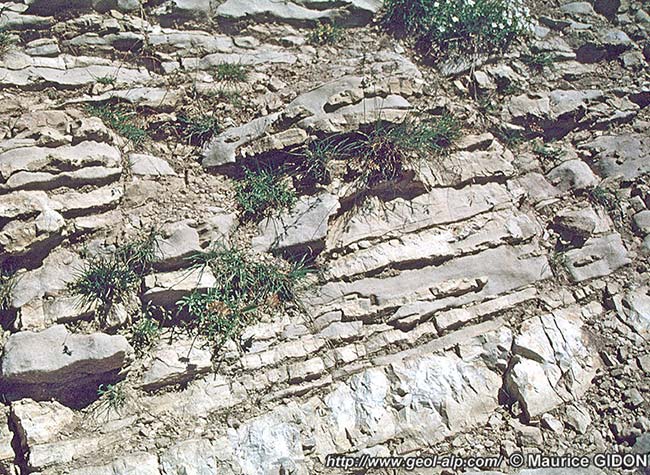 Si ces calcaires restent en général bien moins massifs que ceux de l'Urgonien cela vient de ce que leurs strates, décimétriques à métriques, sont séparées par des joints plus argileux, voire franchement marneux.