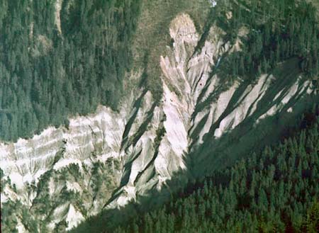 Un affleurement des marnes de Narbonne, dans le versant sud du col de la Saulce (à l'est de Saint-Pierre-de-Chartreuse).