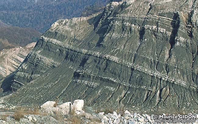 par des alternances de faisceaux calcaires et de lits de marnes,