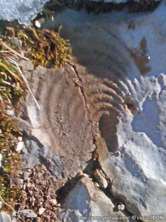 Une empreinte de valve d'Inocérame dans le Sénonien (Habert de Marcieu) (cliché original obligeamment communiqué par Mr. Luc Gidon).