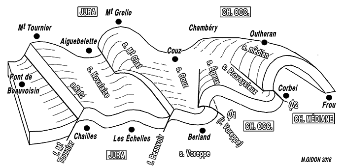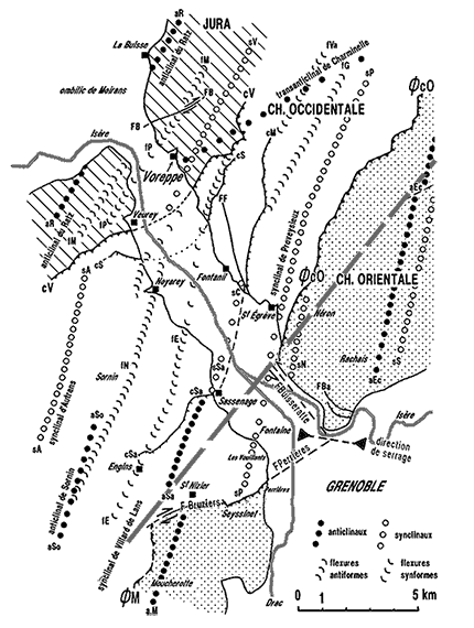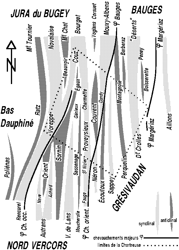 (obliquement à leurs axes) du chevauchement de la Chartreuse