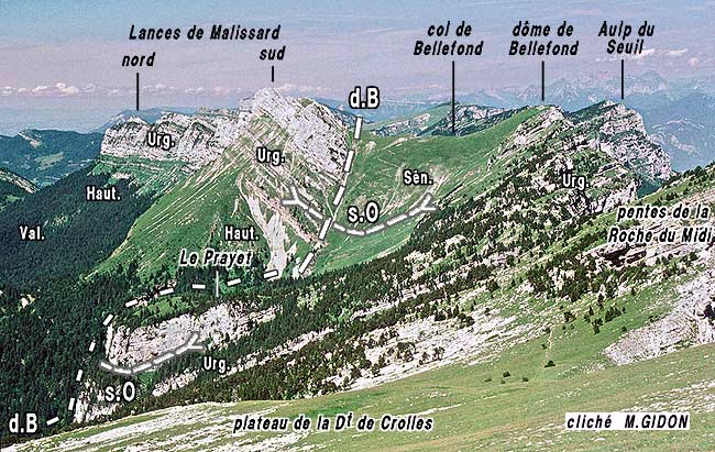 Le plus oriental de ces plis, le grand synclinal chartreux oriental, est aussi le plus remarquable : son Urgonien dessine, depuis le Granier au N jusqu'à la Dent de Crolles au S, un magnifique synclinal perché*, tout-à-fait exemplaire.