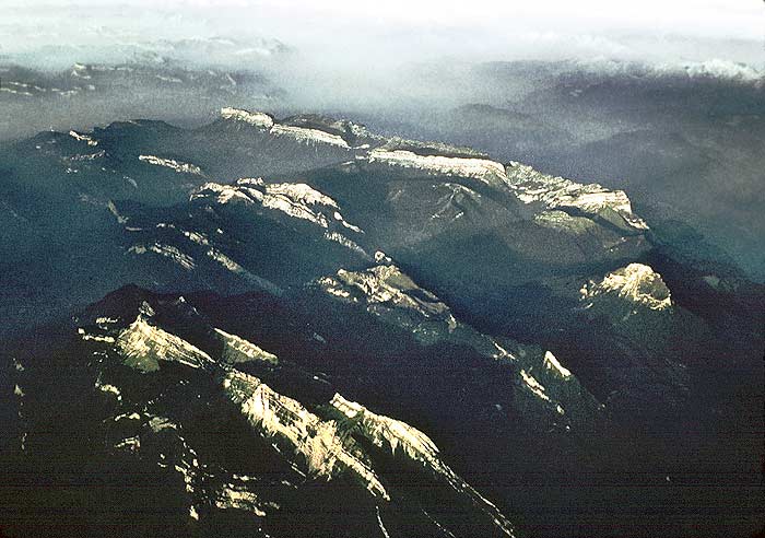 ![]() Vue d'ensemble de la Chartreuse prise depuis le sud - sud-ouest, d'environ 8000 mètres d'altitude (à bord d'un avion de ligne). Sous cet angle on voit que le massif est parcouru de crêtes rocheuses qui le cloisonnent en dépressions allongées à peu près selon l'axe - N-S - de son allongement. Le sillon de la Chartreuse orientale, qui se situe juste à l'est de la limite de cette dernière avec la Chartreuse médiane, est pratiquement vu d'enfilade. Plus à gauche le val de Proveysieux s'allonge entre la Chartreuse médiane et la Chartreuse occidentale. |