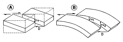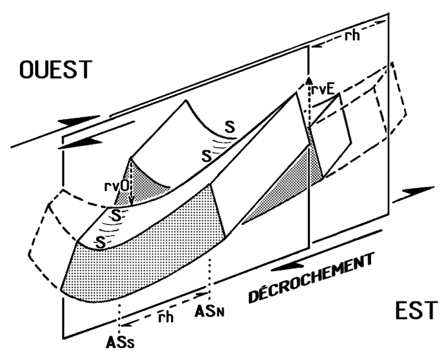 Il est en outre assez fréquent que la valeur du déplacement horizontal le long d'un décrochement soit telle que ce soient les deux flancs opposés d'un même pli qui sont ramenés l'un contre l'autre. Ainsi, dans le cas d'un décrochement dextre, le flanc ouest du compartiment nord s'aboute-t-il au flanc est du compartiment sud. Cet affrontement de bancs à pendages de sens opposé peut alors surprendre, puisque faille semble alors avoir provoqué un basculement des couches d'une de ses lèvres à l'autre, ce que, bien évidemment elle ne fait pas (car elle peut seulement déplacer des ensembles rocheux mais non les basculer !).