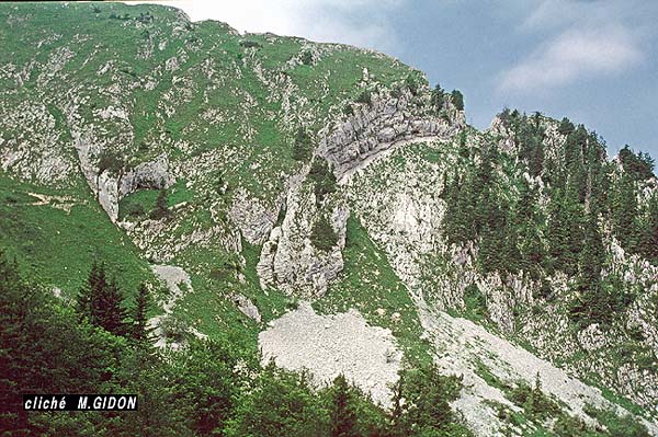 On en trouvera un autre exemple dans l'anticlinal de Perquelin, décroché par la faille de Bellefond, au Collet de Pravouta.
