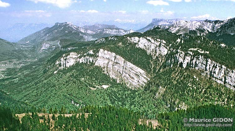 Le même phénomène de troncature plane, affectant des couches plus inclinées, s'observe également en Vercors occidental (au Bec de l'Orient et dans le secteur du Serre Cocu, au nord de Pont en Royans), dans le Vercors oriental (au Grand Veymont) ainsi qu'au front ouest des Bauges, dans le chaînon du Nivolet-Revard et ceux de la montagne de Bange et du Semnoz. Il en est de même à l'ouest des Bornes, au Salève, où la montagne culmine par un plateau mamelonné de collines hauteriviennes, parce que l'anticlinal qui la forme a été écrêté de son Urgonien et dans les Bornes occidentales au Parmelan où un compartiment de faille soulevé est aplani au niveau du reste du plateau sommital.