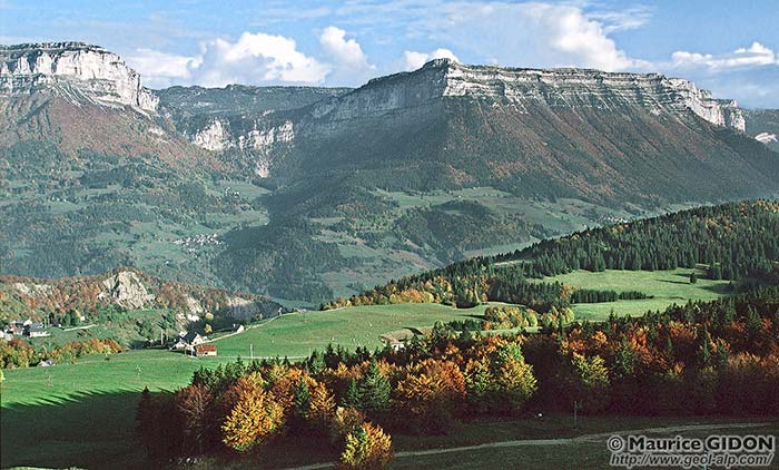 Au delà les pentes boisées, à déclivité régulière et assez forte, sont celles de la nappe d'éboulis anciens (sans doute anté-rissiens) qui tapisse tout le haut versant jusqu'au col du Granier (le soubassement de calcaires du Fontanil n'y affleure que localement, dans les entailles de ravines.