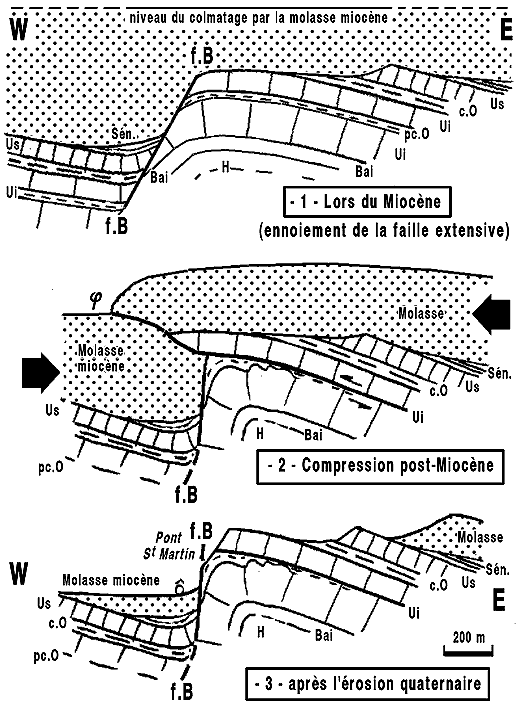 1 - La cassure originelle (f.B) serait une faille extensive