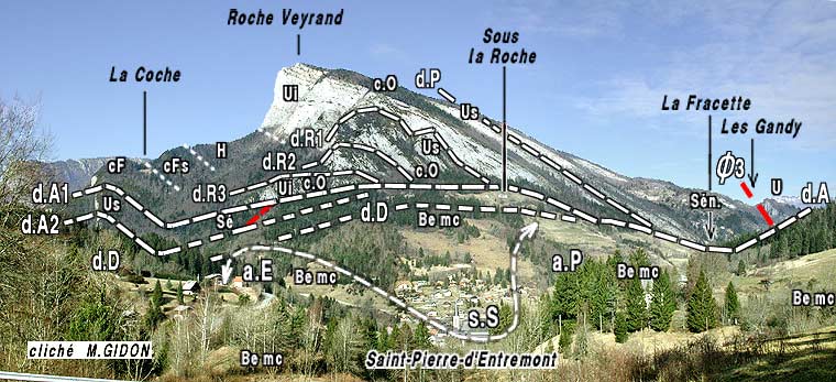 Les pentes inférieures de la dépression de Saint-Pierre-d'Entremont sont en effet tapissées par des alluvions fluvio-glaciaires, à cailloutis et à gros blocs (parfois avec lits sableux ou limoneux), qui affleurent en divers point dans les entailles de route ou de torrents.