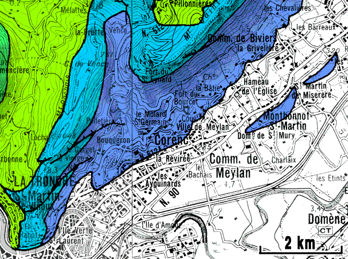 L'itinéraire oriental, des pentes de Sainte-Marie du Mont, est décrit ci-après car c'est celui qui montre les affleurements les plus variés et les plus intéressants, surtout si (au départ du quartier Saint- Laurent) l'on s'y engage à la place de la Cymaise, sur les quais de l'Isère (plutôt qu'à l'Église Saint-Laurent) :