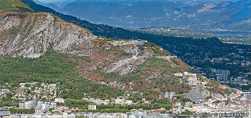 Le téléphérique qui mène au fort de la Bastille donne accès à un panorama d'ensemble de la cuvette grenobloise que des tables d'orientation placées sur le toît du bâtiment permettent d'analyser. On en trouvera l'essentiel (pris sous un autre angle, depuis le Saint-Eynard) à la page "Grenoble".