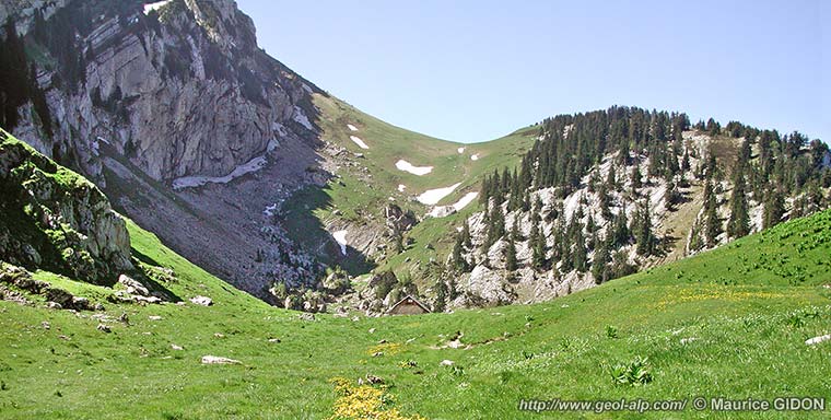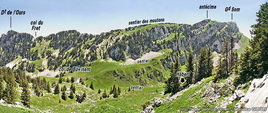 À l'ouest du habert les alpages, installés sur la lèvre méridionale du décrochement de Bovinant, s'appuient pratiquement contre l'Urgonien de sa lèvre septentrionale.