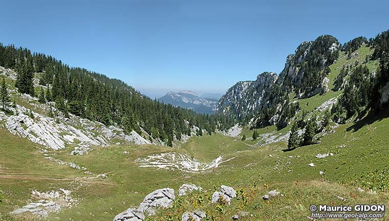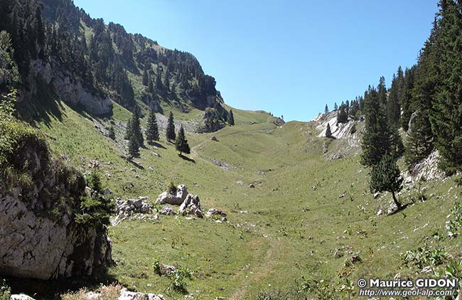 Au sud du chalet de Bovinant la bande d'affleurements sénoniens se poursuit par le vallon de Mauvernay, qui affecte la forme d'une combe bien dissymétrique.