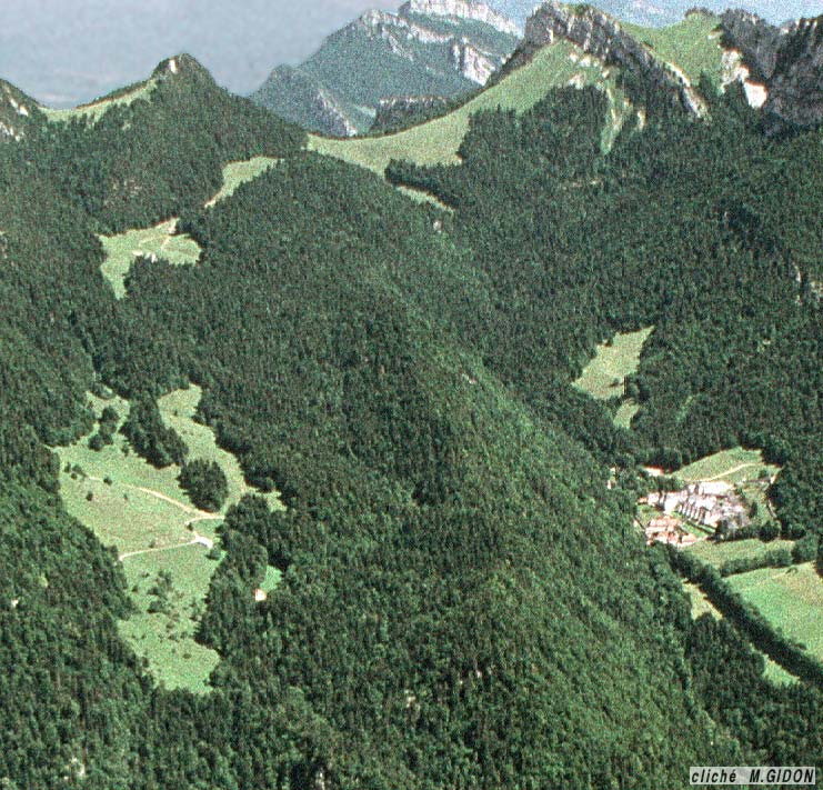 Or la cartographie y met en évidence l'existence d'un redoublement de la barre tithonique, lequel s'observe non seulement le long de la route forestière de Chartroussette. mais finalement sur toute la longueur des pentes occidentales de l'échine de la Fitole, On constate en effet que les prairies qui tapissent le vallon de Chartroussette sont installées, au nord comme au sud de la route, sur les couches du Berriasien inférieur. Mais leurs affleurements sont en fait partagés en deux par une nervure rocheuse saillante, garnie de bois qui court peu à l'est du fond du vallon et qui est constituée par du Tithonique. Il y a donc là un accident tectonique qui fait resurgir une lame de Tithonique au sein même du Berriasien du flanc ouest de l'anticlinal médian.