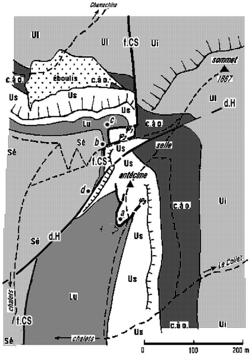 | carte géologique détaillée du chaînon du Charmant Som | ||